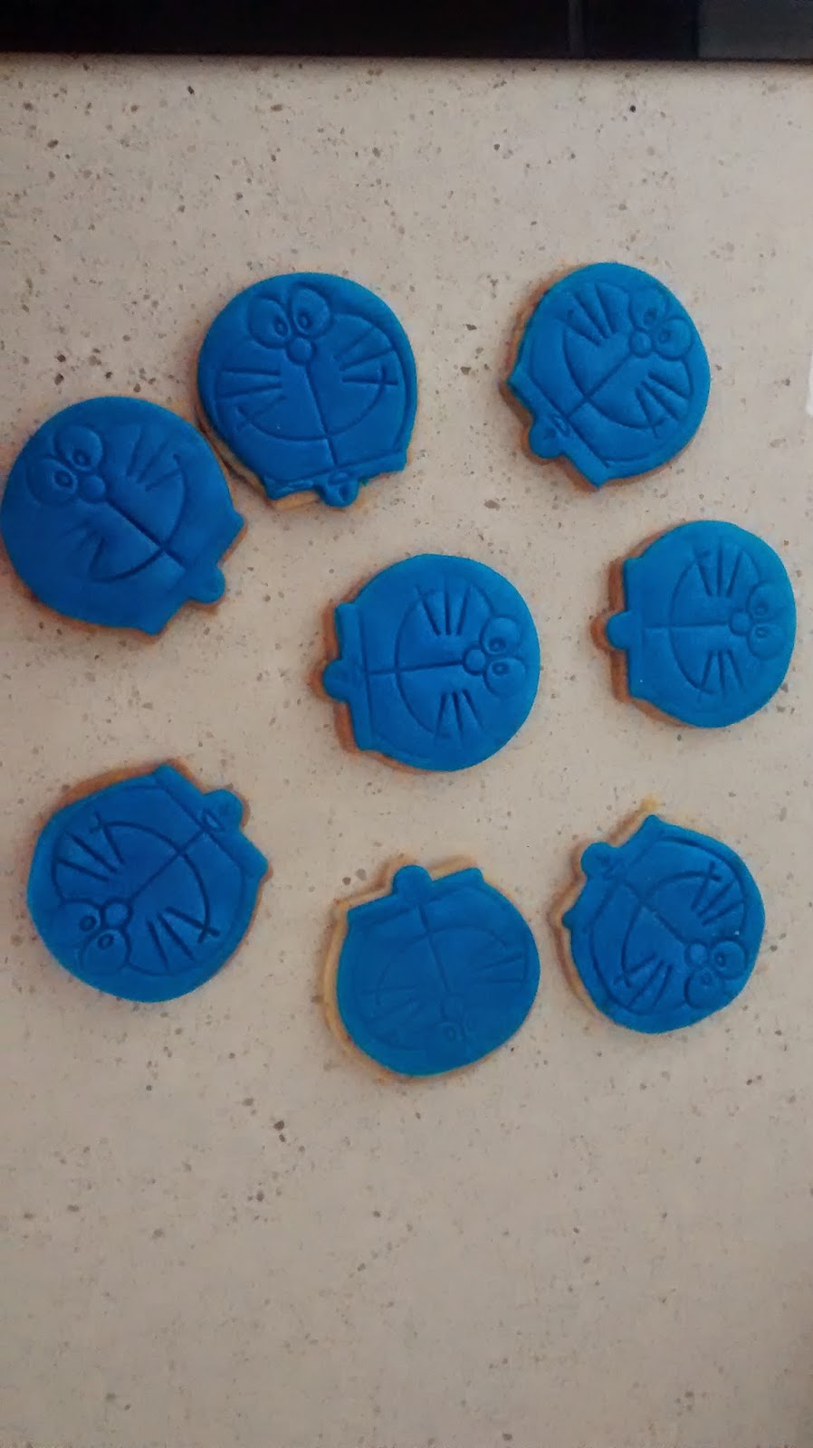 Mi cuñada Isabel me pidió que le hiciera una tarta de Doraemon para el cumple de su sobrino Carlos, este fue el resultado, una divertida tarta! Brownie de chocolate con leche rellena de crema pastelera y acompañada la tarta de unas simples y gracias galletitas.